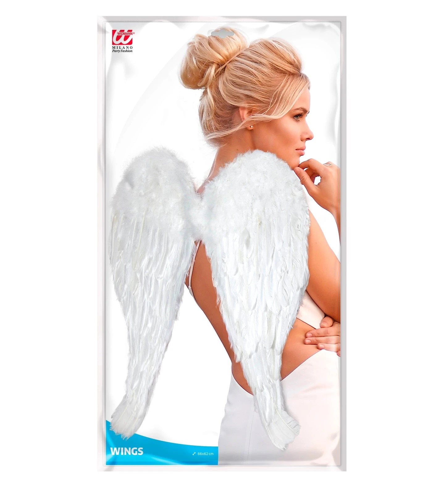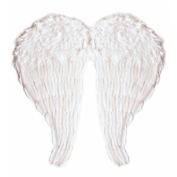 Ali modello angelo realizzati con una base di cartoncino ricoperta di piume di colore bianco. Si indossano con estrema facilità, grazie alle pratiche bretelle elasticizzate poste all’interno delle ali stesse. L’imbracatura in questo modo è tipo zaino. Le dimensioni di questa tipologia di ali è lunghezza centimetri 67 x una larghezza di centimetri 64. Si tratta di un buon paio di ali carnevalesche, ad un prezzo accessibile