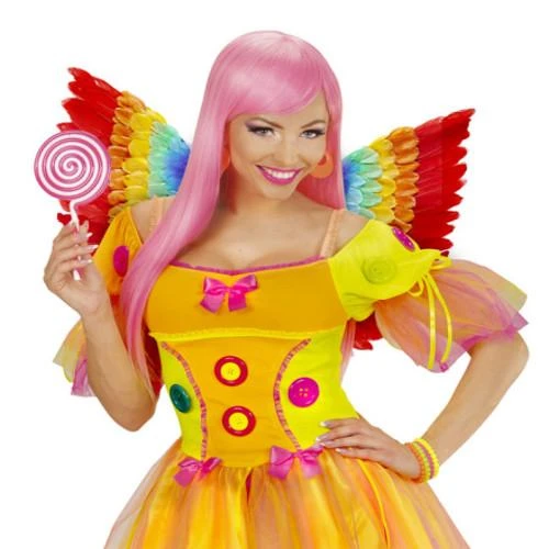Ali in piume coloratissime. Disegnano i colori dell’arcobaleno. Taglia da adulto. Da abbinare ad esempio ad abiti di fate e/o follette.