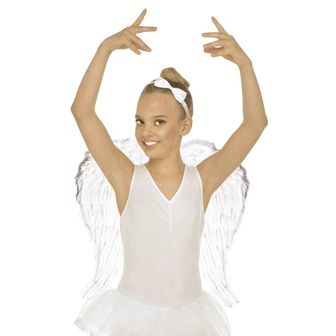 Ali in piume bianche con misura 51×46 centimetri, ideali per bambini ma possono essere utilizzati anche per adulto. S’indossano come uno zaino in quanto dotate di bretelle per le spalle.