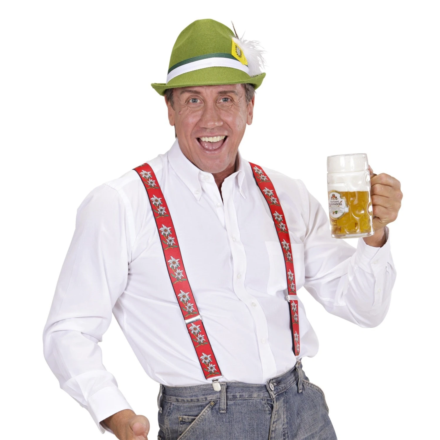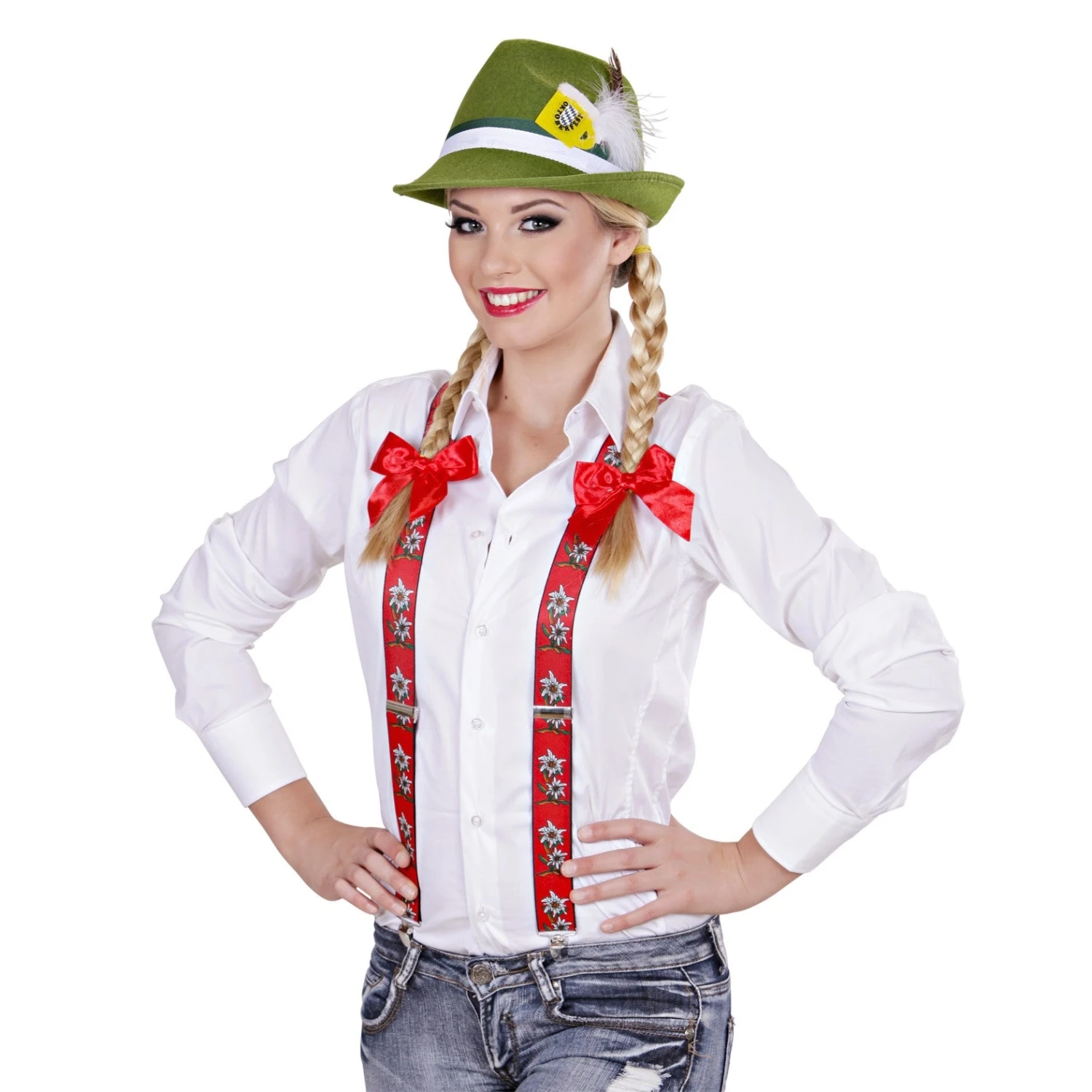 Bretelle di colore rosso con disegnate delle stelle alpine. In tessuto elasticizzato.