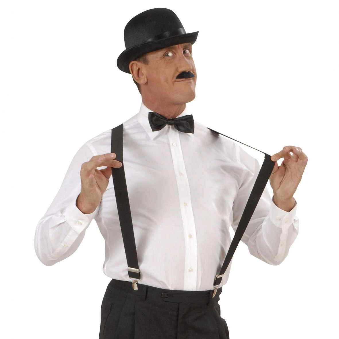 Bretelle nere in tessuto elasticizzato da bloccare ai pantaloni tramite le apposite clips. Un accessorio classico e intramontabile da utilizzare sia sui costumi e i travestimenti sia, a chi piace, sui normali capi d’abbigliamento.