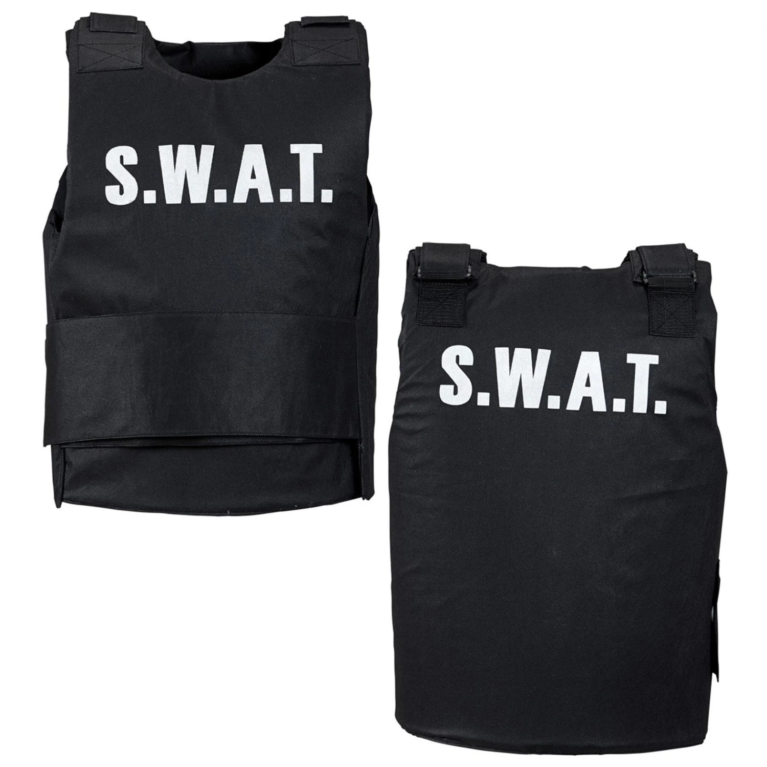 Taglia unica da adulto in tessuto di qualità, regolabile in circonferenza. Giubbotto swat realistico, per vestire i panni di un militare dei reparti speciali della Polizia, sia ad Halloween che Carnevale.