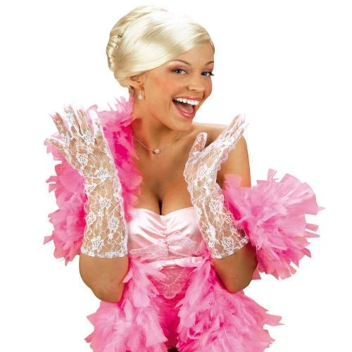 GUANTI IN PIZZO BIANCO DECORATI CON MOTIVI FLOREALI. LUNGH. CM 40