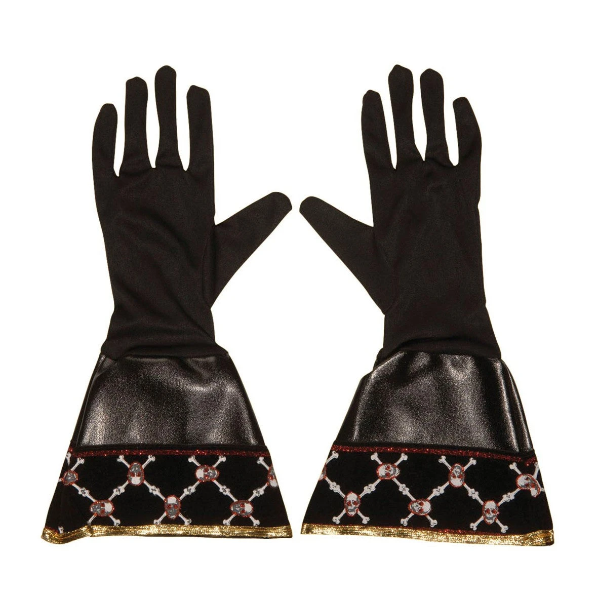 GUANTI PIRATA IN SIMILPELLE COLORE NERO, CON TESCHI PER DECORAZIONE IN GLITTER. DIM : LUNGH. CM 32 x LARGH. CM 16