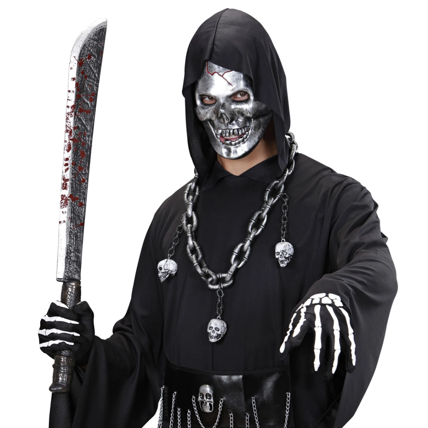 E’ sempre stato un pazzo sanguinario, il caro vecchio “ragazzo delle consegne, come ama definirlo Freddy Krueger. Jason, dopo essere affogato nel Krystall Lake ha deciso che la missione della propria vita fosse quella di trucidare, o mutilare, le persone. Ecco perchè il suo lungo macete ha una lunghezza di ben 75 centimetri. Quello che ti proponiamo è una riproduzione molto veritiera, ma realizzata in plastica rigida, del suo arnese di tortura. Il machete ha presente molti schizzi di “sangue”. Perfetto accessorio se avrai la voglia di travestirti da Jason, per Halloween.