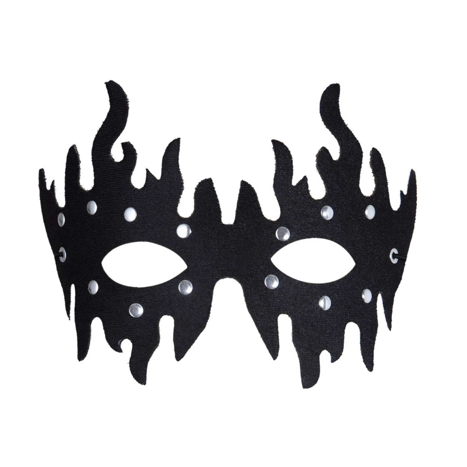 Maschera dal sapore decisamente dark e metallaro. Maschera semirigida con borchie disseminate per tutta la maschera. Con elastico a tergo per poterla sorreggere.