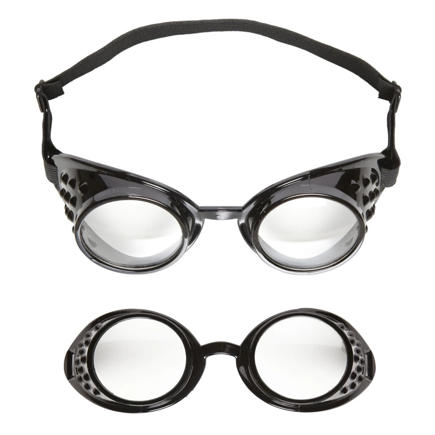 Occhiali modello laboratorio con lenti spesse. Possono essere utilizzate anche come occhiali da aviatore. Realizzati in plastica.