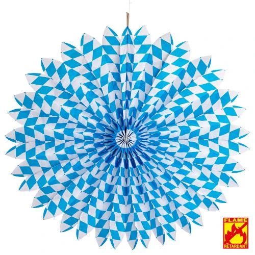 Rosone dai colori bianco e celeste che viene usato per le decorazioni di locali durante l’Oktoberfest. Molto particolare risulta la trama, che produce figure geometriche concentriche. Diametro 70 cm.