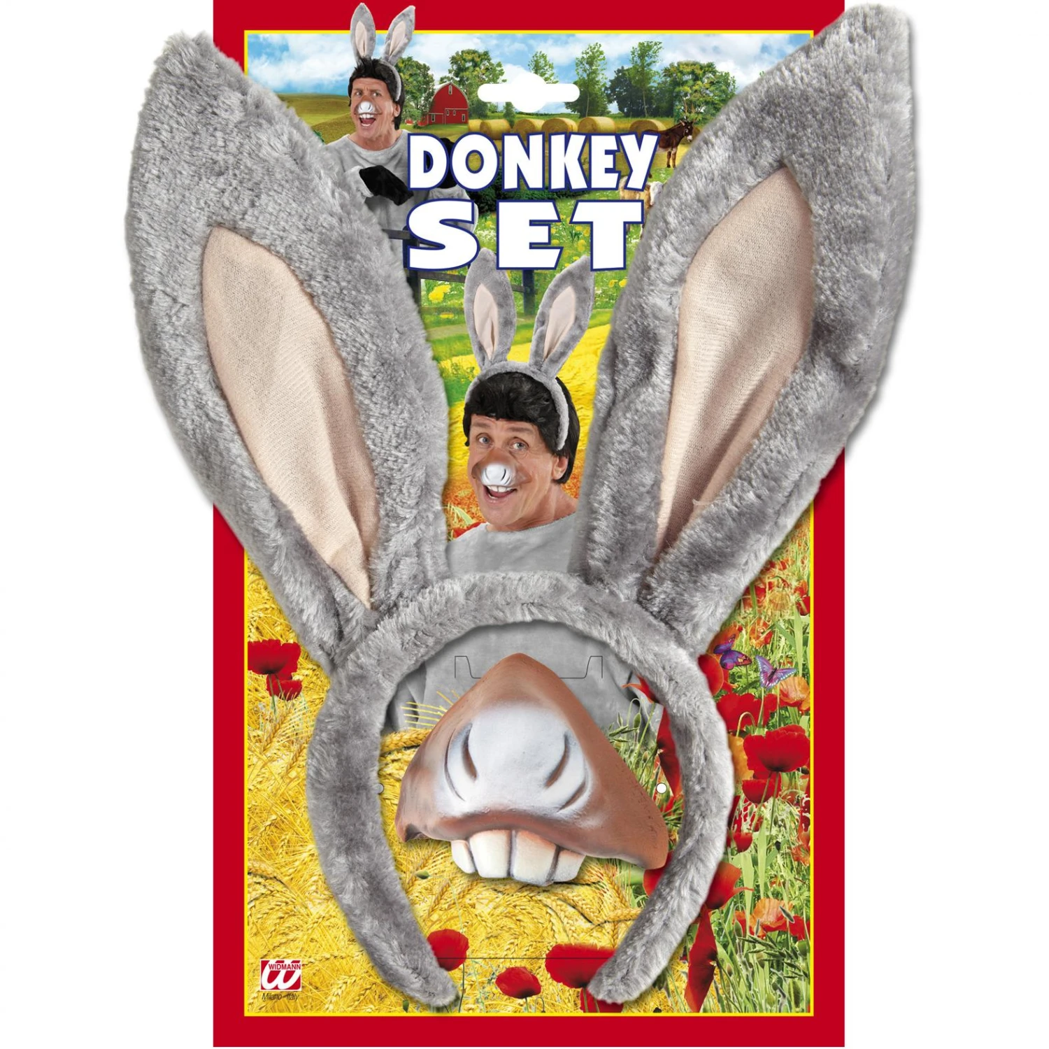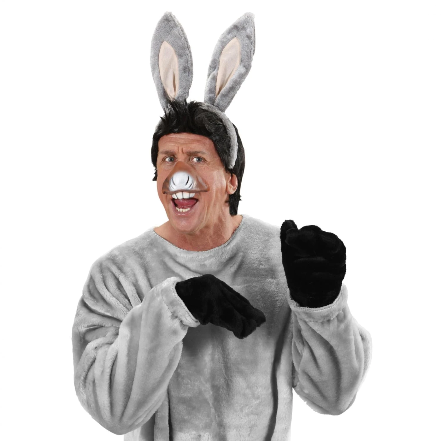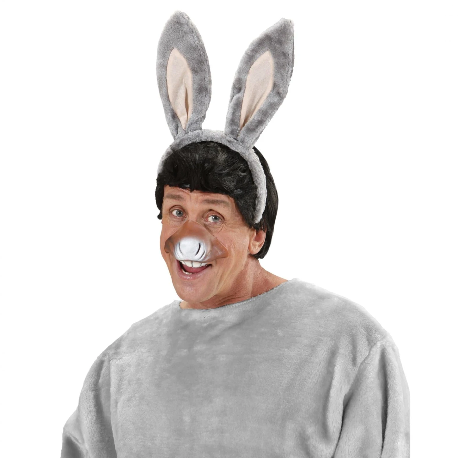 Cerchietto con orecchie da asino interamente ricoperte in pelouche grigio ed un naso in lattice con denti sono i pezzi che compongono questo kit da asino per travestimento da adulto o da bambino. Una tuta grigia ed il costume da asino è pronto. Effettivamente il cerchietto per la testa è in misura adattabile sia ad un adulo che ad un bambino ed il naso in lattice è dotato di elastico da girare intorno alla testa. Per la recita di fine anno o per un saggio natalizio per il bue e l’asinello, questo set risolverà gran parte del travestimento di tuo figlio.