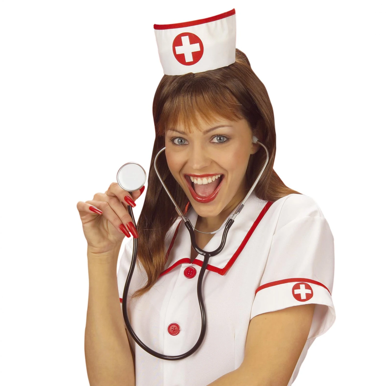 Stetoscopio da dottore in plastica e metallo, realmente funzionante, accessorio per completare in maniera simpatica e realistica il tuo costume di Carnevale a tema dottori e infermiere.