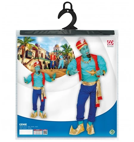 Il costume del famoso genio in versione economica. Include: maglia con muscoli, gilet, pantaloni, fusciacca, copriscarpe, turbante. Taglie disponibili: M – L.