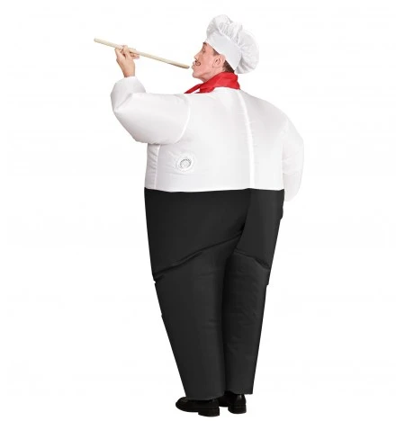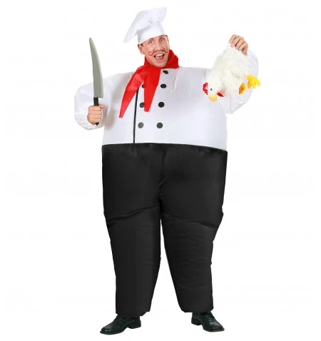 Siamo lieti di presentarvi la nuova linea di costumi gonfiabili della Widmann, ben diversa dalla solita produzione made in china che trovate un po’ dovunque… Questo costume è molto divertente, facile da indossare e si gonfia in pochi istanti grazie al pratico ventilatore incluso che funziona a pile ( non incluse). Nel costume sono compresi: il foulard rosso e il cappello da chef. Come da foto.