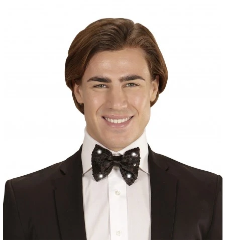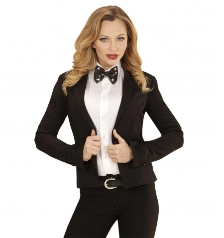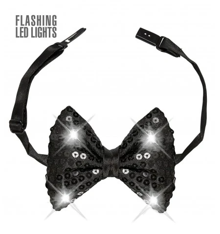 Un papillon luminoso in raso con paillettes. Colori disponibili: nero – rosso – argento.